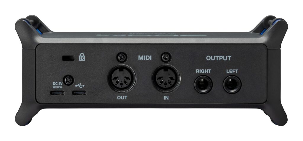 Вход и выход MIDI позволяют вам подключать внешнее MIDI-совместимое оборудование, например, драм-машины, синтезаторы и цифровые клавиатуры.
